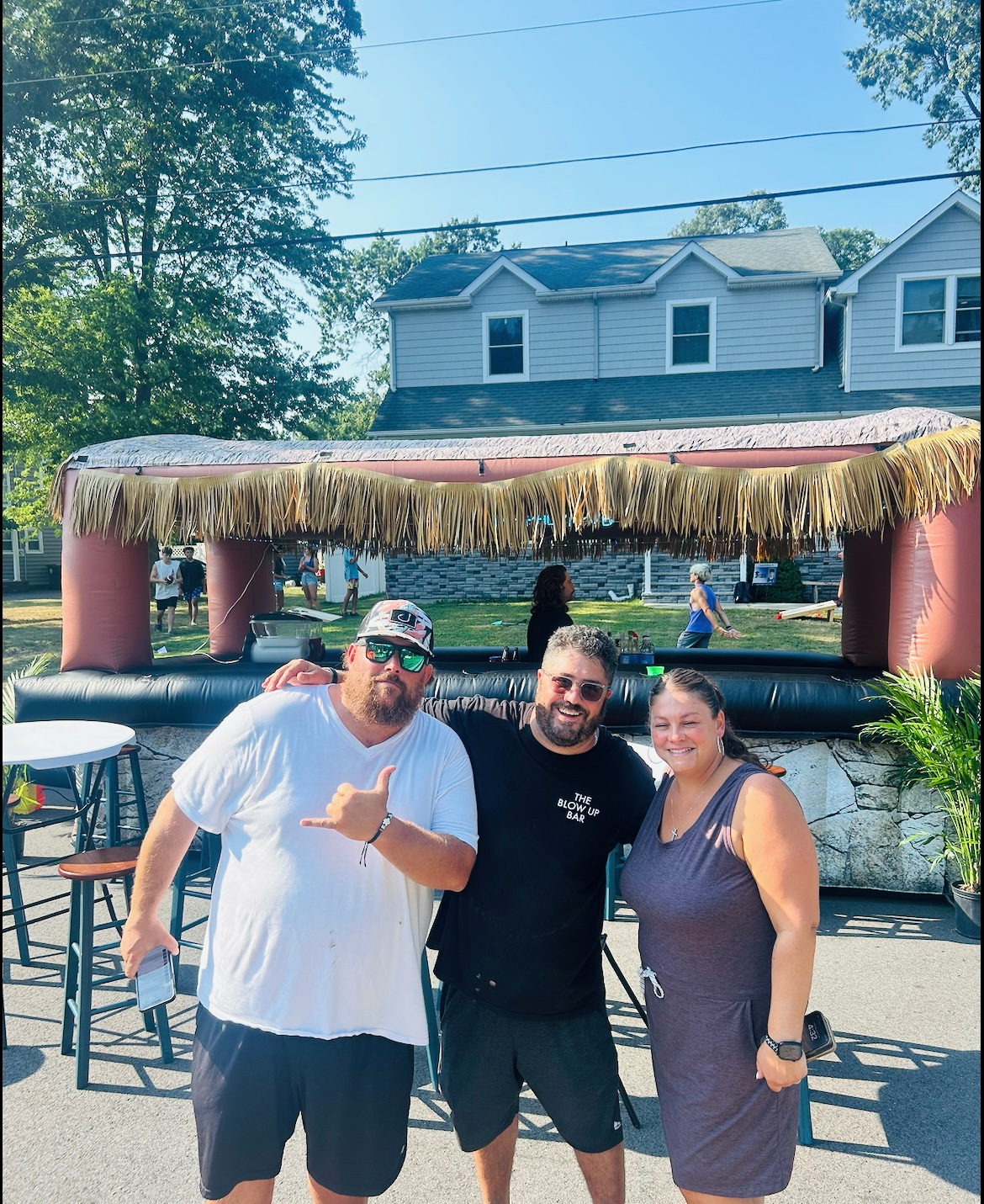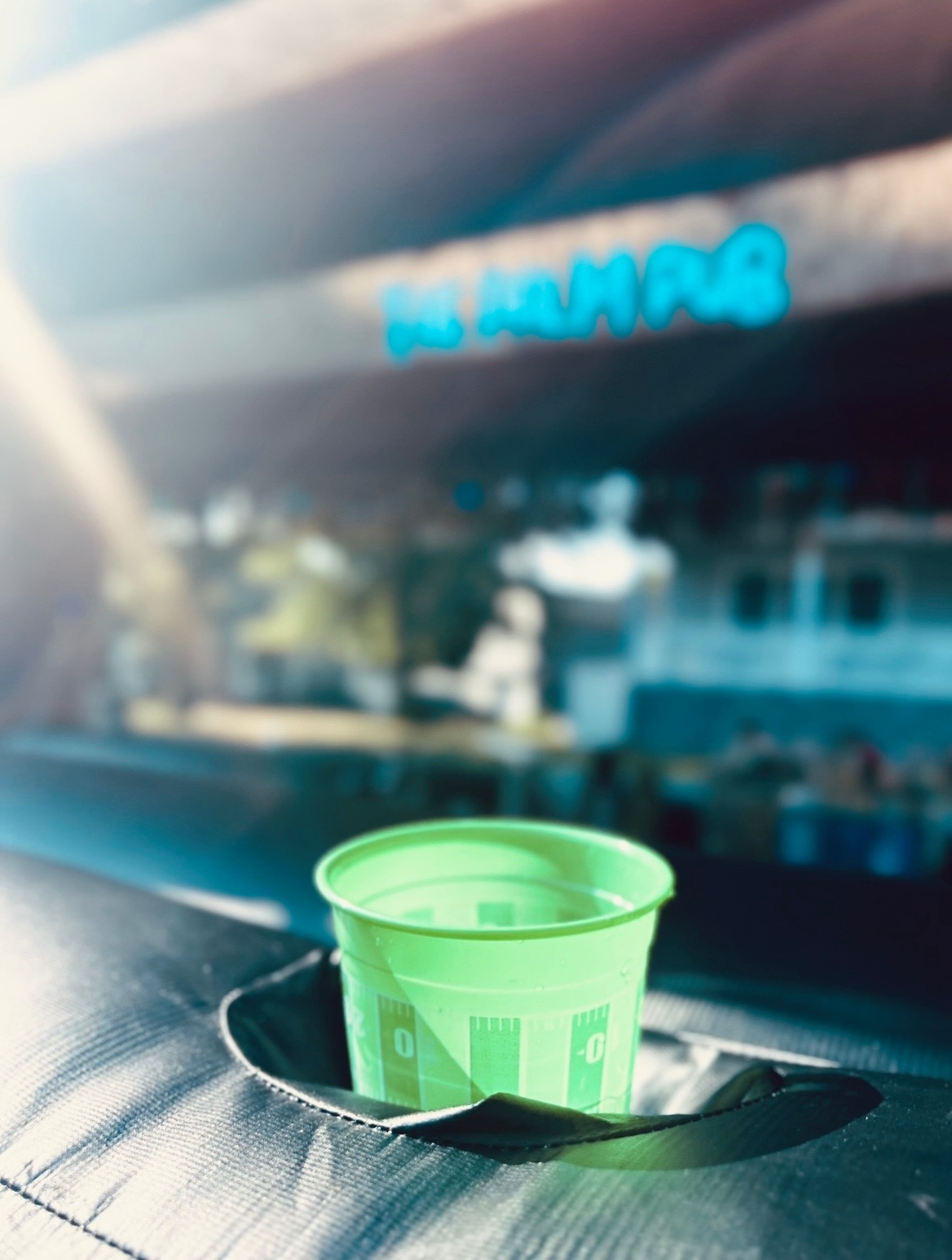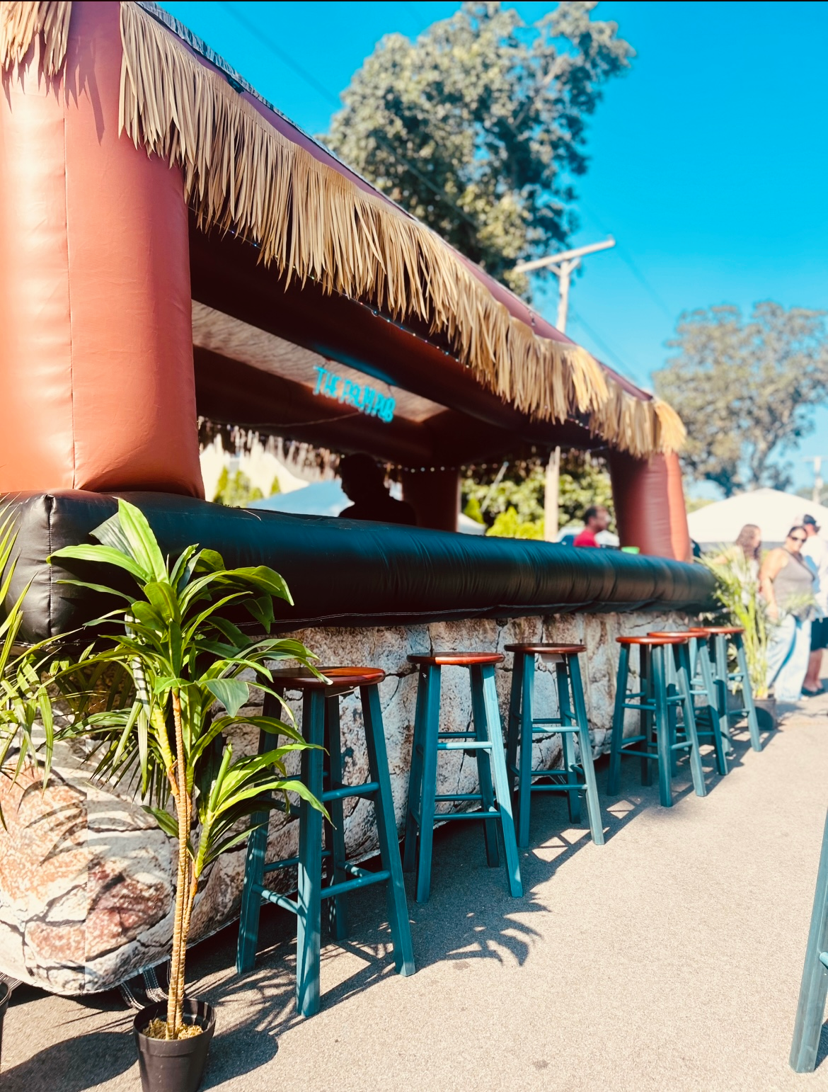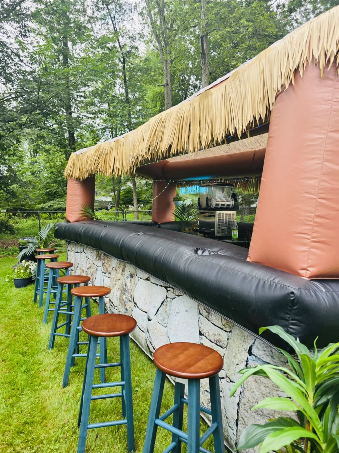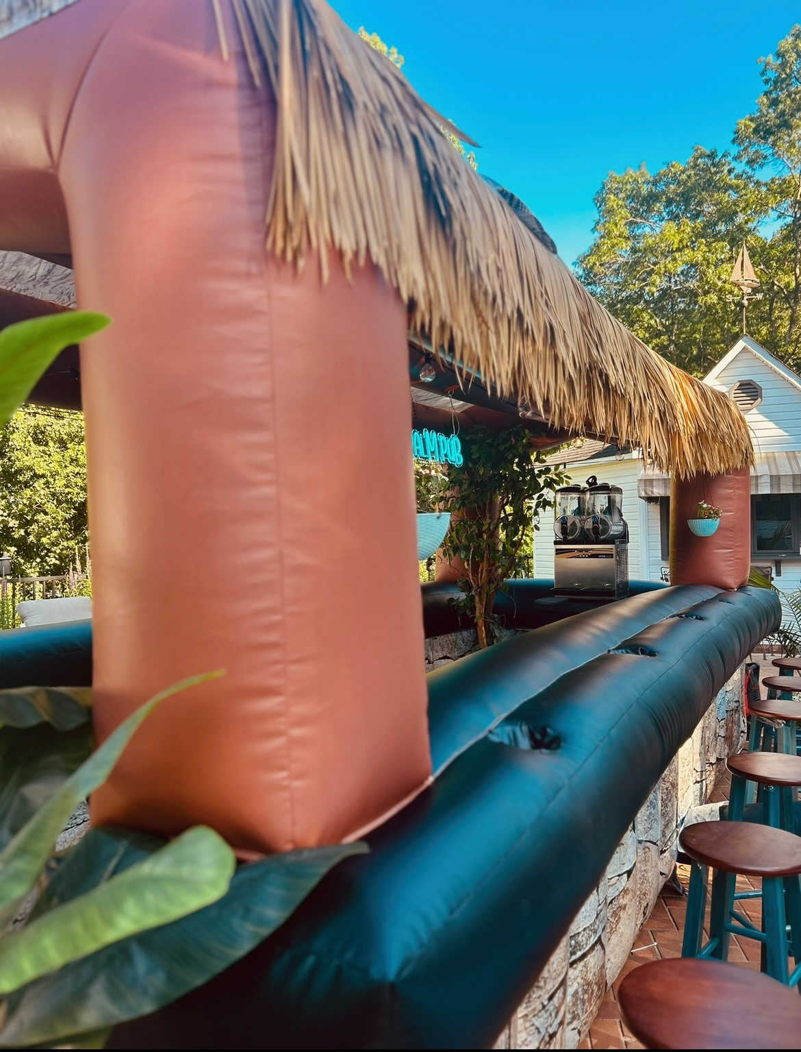 The Palm Pub is an inflatable tiki bar that brings a laid-back, island feel right to your backyard. It’s a full setup with bar space, stools, and room to hang out — perfect for birthdays, block parties, showers, or any excuse to get people together. We’ll bring it, set it up, and take it down when the party’s over.
